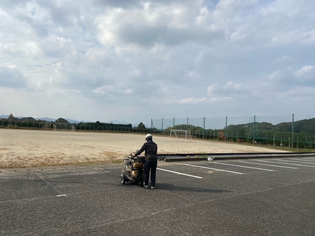今回は北九州の某学校様より駐車場のライン引きのご依頼がありましたので、ご紹介します。