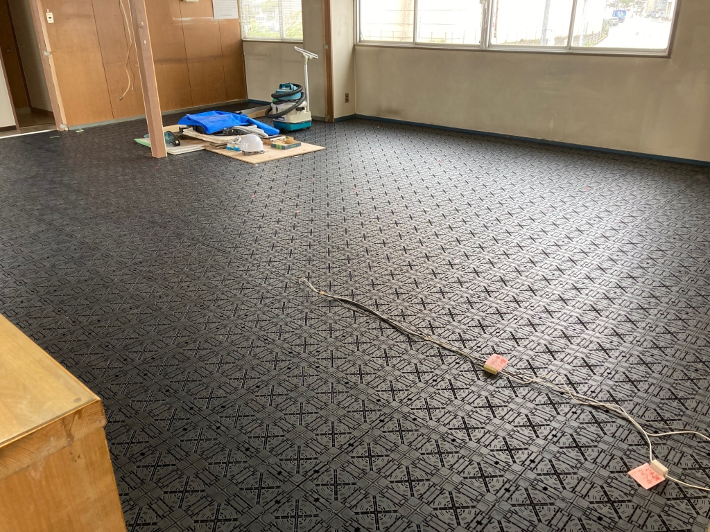 以下は、タイルカーペットを敷き込んだ直後の写真です。