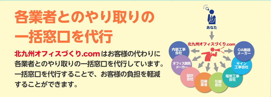北九州オフィスづくり.comは、福岡県北九州市周辺のあらゆるオフィスづくりに対応いたします。お気軽にご相談ください。